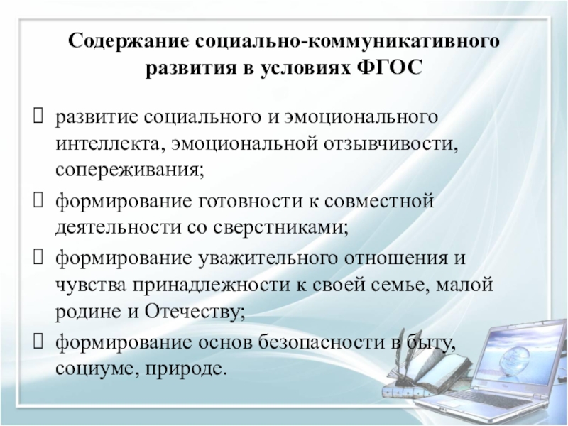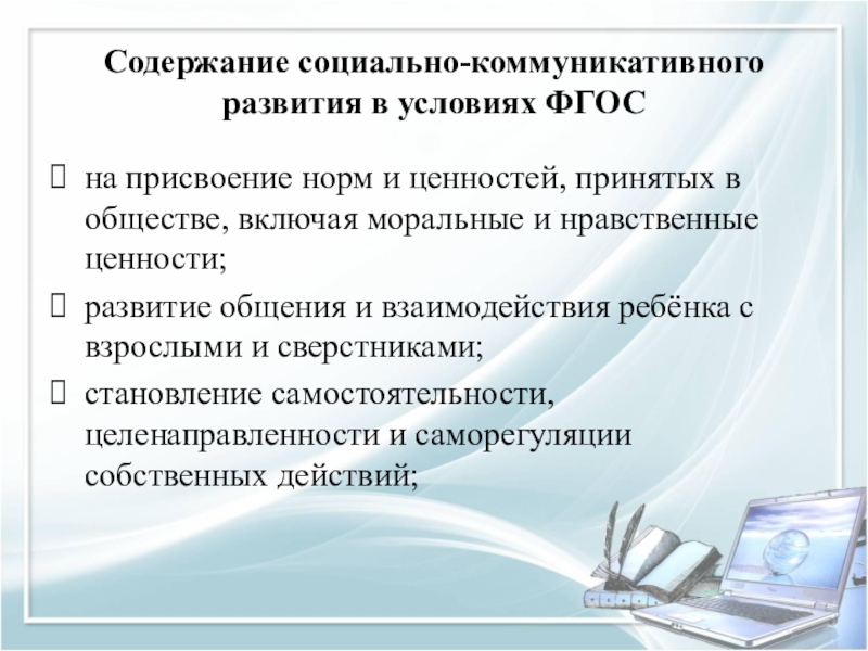 Слайд 8Содержание социально-коммуникативного развития в условиях ФГОС
