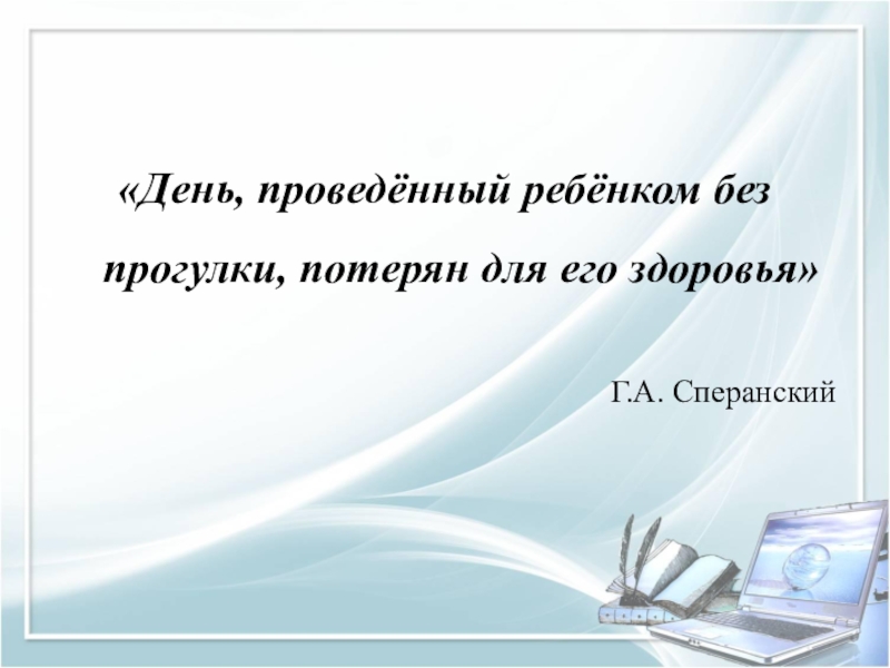 Слайд 47«День, проведённый ребёнком без прогулки, потерян для его здоровья»