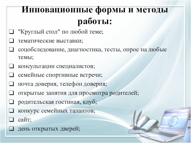 форм и методов повышения эффективности семейного воспитания через взаимодействие организации и семьи.