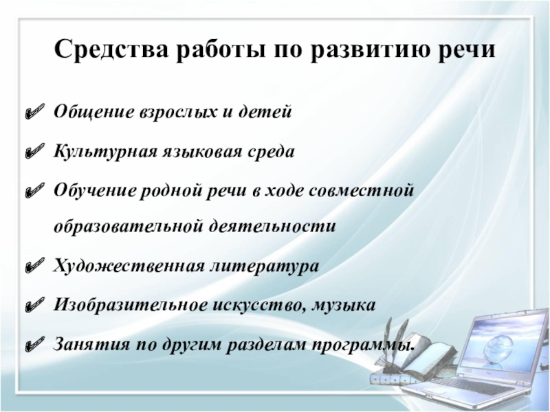 ознакомление родителей с результатами обучения (открытые занятия, различные общие мероприятия, информация в уголках для родителей и прочее);