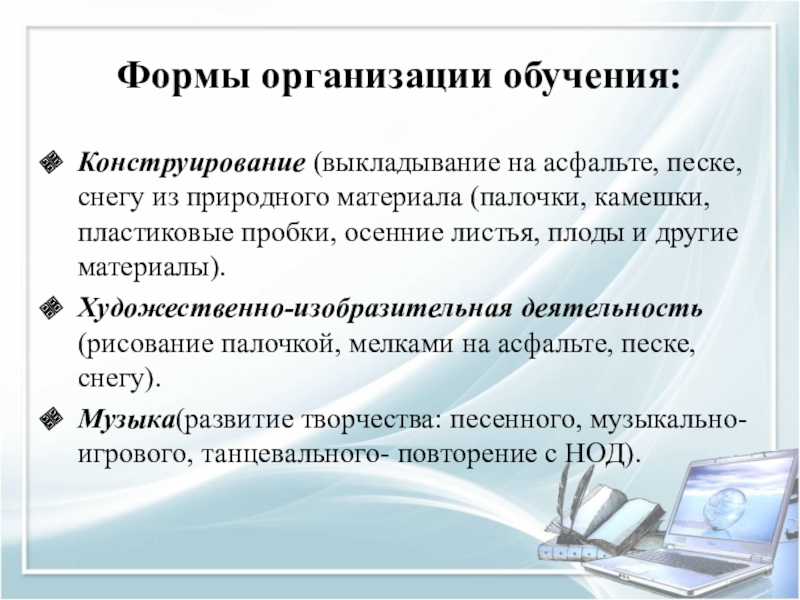 вариативная организация игровых проблемных ситуаций, игровых поисковых ситуаций, усложняющихся игр-экспериментирований и игр-путешествий;.
