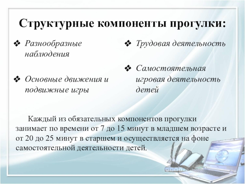 Каждый из обязательных компонентов прогулки занимает по времени от