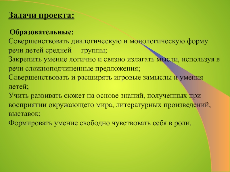 Совершенствовать диалогическую и монологическую форму речи детей средней