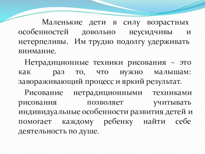 Слайд 3 Маленькие дети в силу возрастных особенностей довольно неусидчивы и