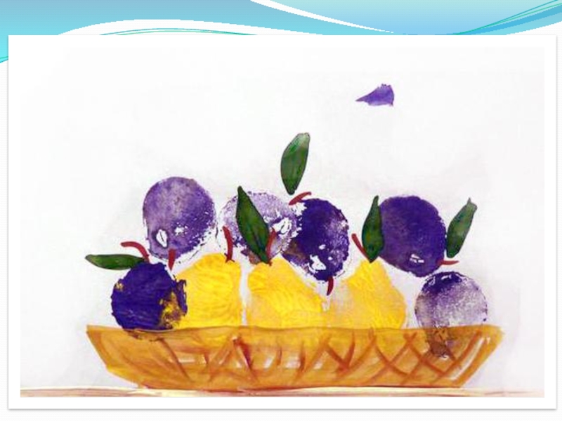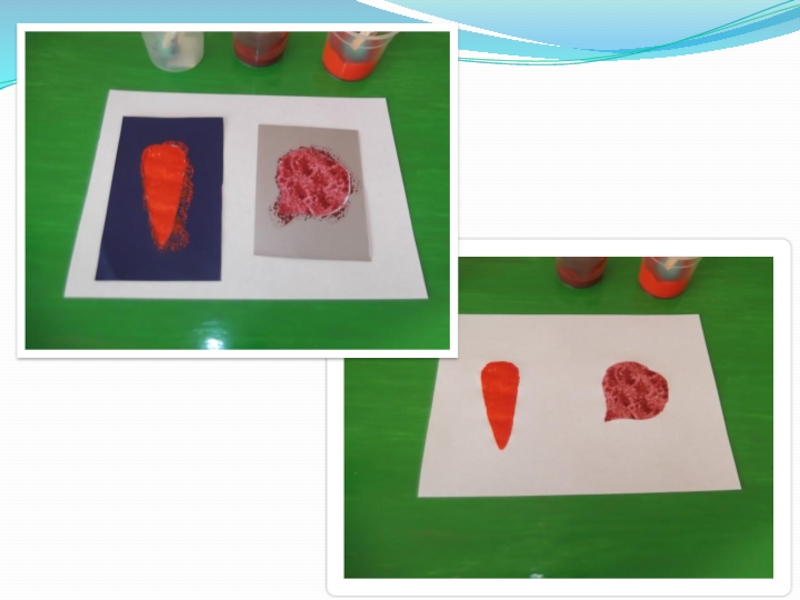 Материал: печатки, бумага краски, тарелочки, губка-подушечка.
