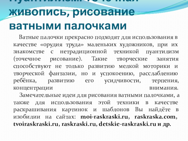 Слайд 22Пуантилизм. Точечная живопись, рисование ватными палочками