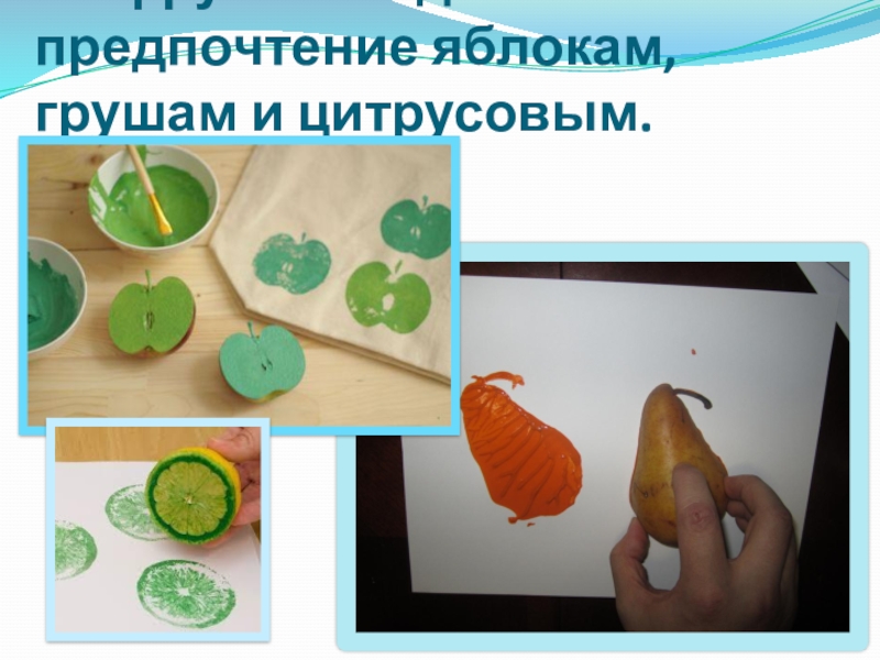 Слайд 12Из фруктов отдайте предпочтение яблокам, грушам и цитрусовым.