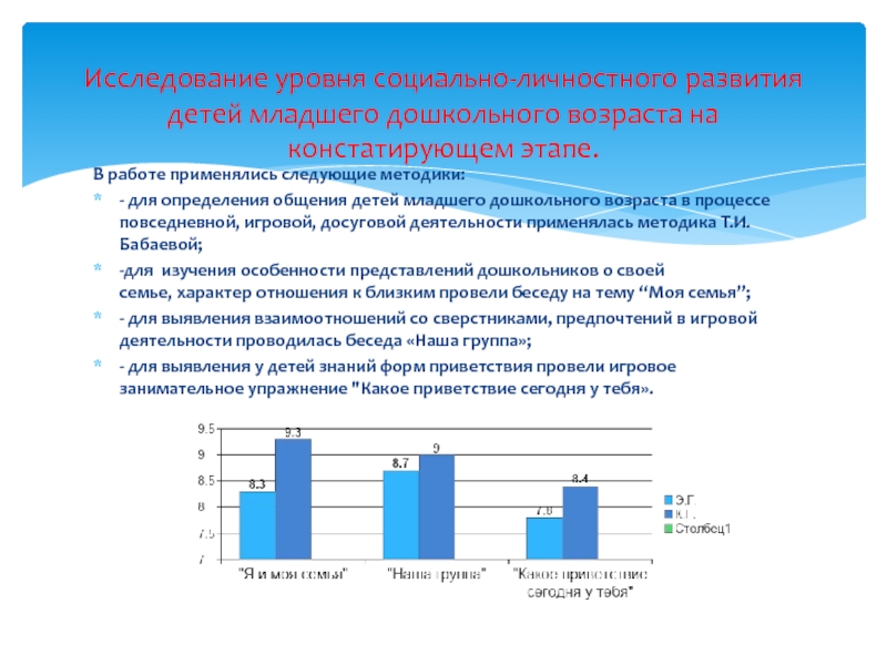 Исследование уровня социально-личностного развития детей младшего дошкольного возраста на констатирующем этапе.