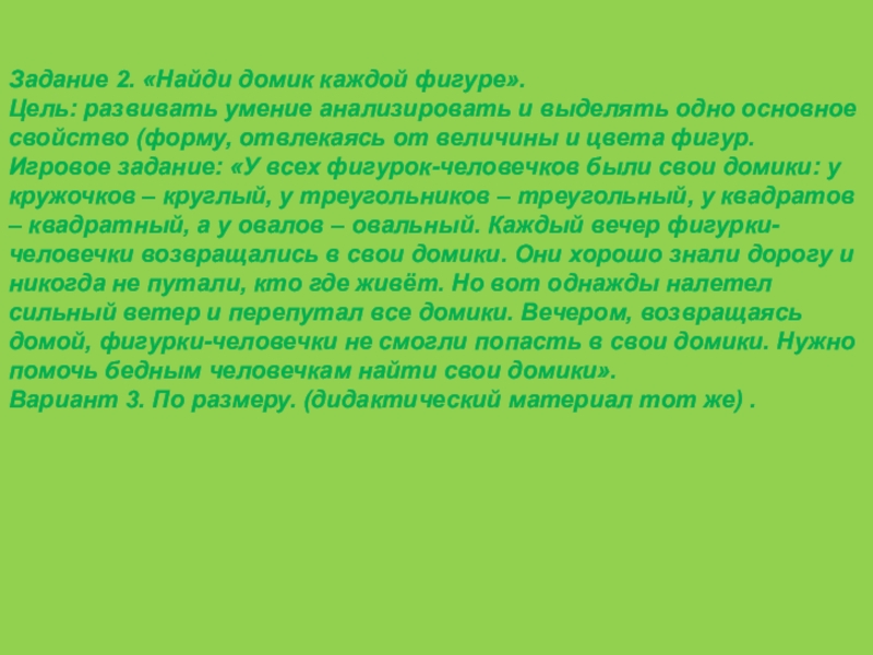 Слайд 5Задание 2. «Найди домик каждой фигуре».