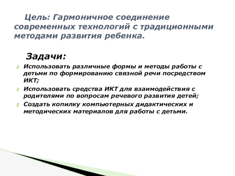 Цель: Гармоничное соединение современных технологий с традиционными методами развития ребенка.