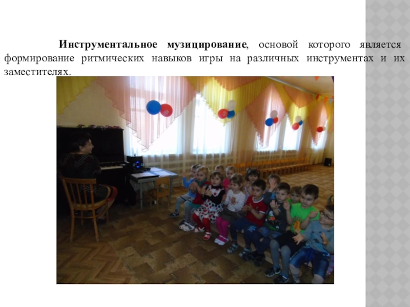 Слайд 5 Инструментальное музицирование, основой которого является формирование ритмических навыков