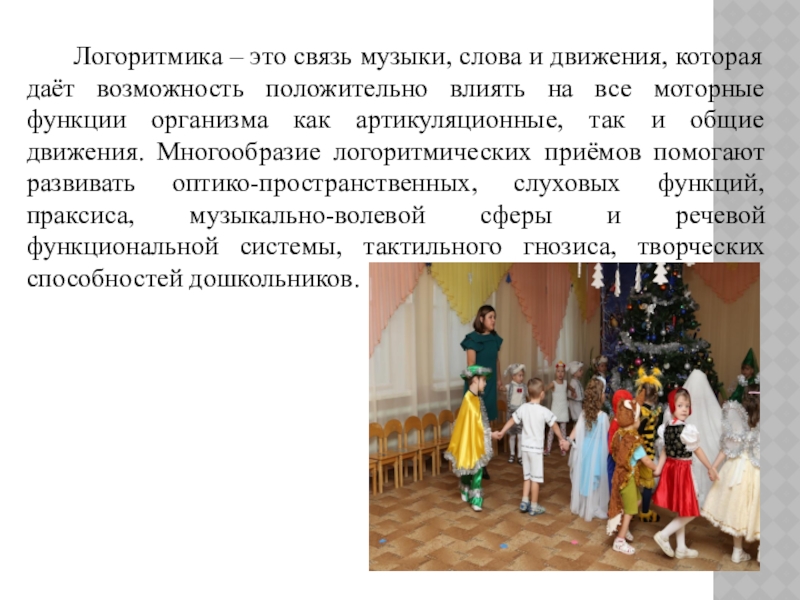 Слайд 2Логоритмика – это связь музыки, слова и движения, которая даёт возможность