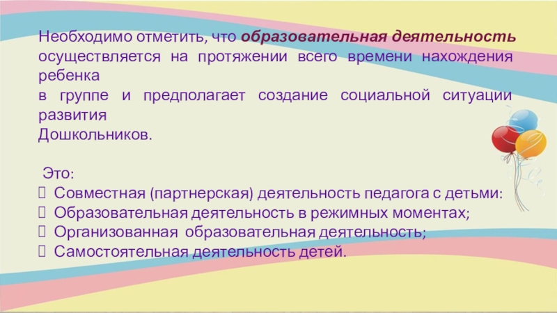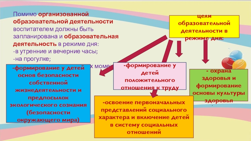 Слайд 10Помимо организованной образовательной деятельности воспитателем должны быть запланирована и образовательная деятельность