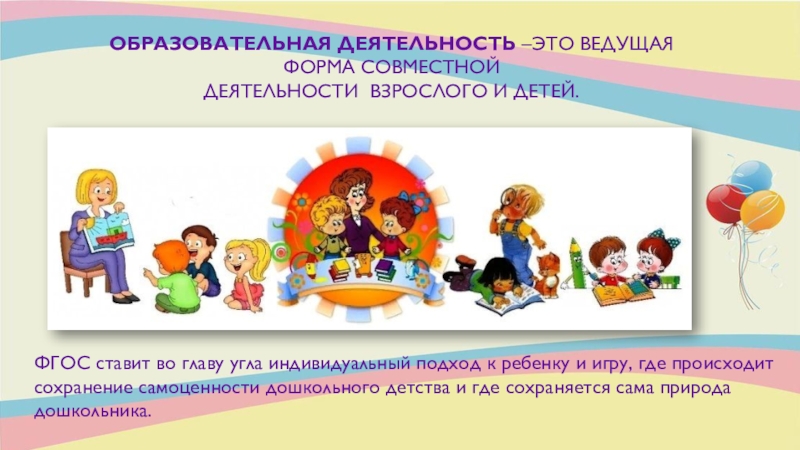 Слайд 4ОБРАЗОВАТЕЛЬНАЯ ДЕЯТЕЛЬНОСТЬ –ЭТО ВЕДУЩАЯ ФОРМА СОВМЕСТНОЙ