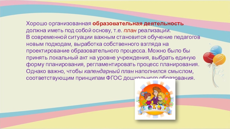 Слайд 14Хорошо организованная образовательная деятельность должна иметь под собой основу, т.е. план