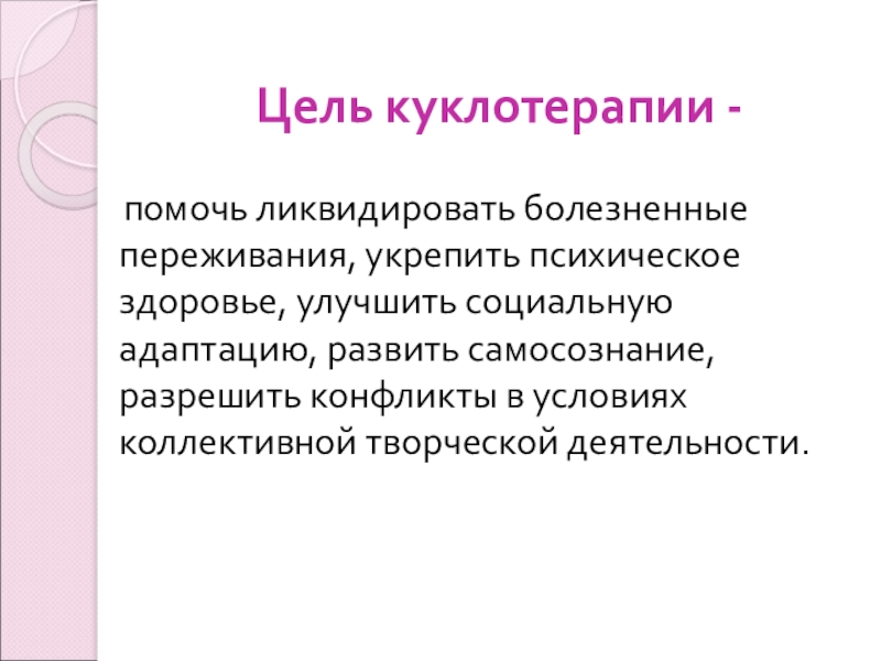 Слайд 9Цель куклотерапии -