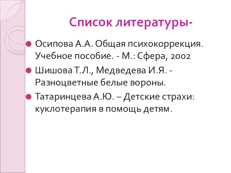 Осипова А.А. Общая психокоррекция. Учебное пособие. - М.: Сфера, 2002