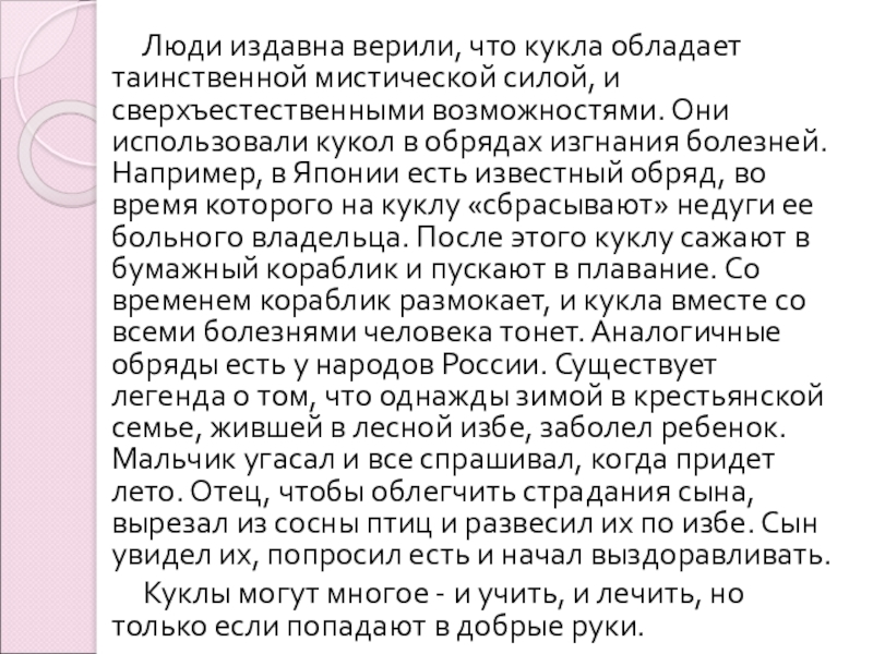 Слайд 4 Люди издавна верили, что кукла обладает