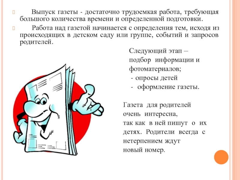 Слайд 10 Выпуск газеты - достаточно трудоемкая работа, требующая большого
