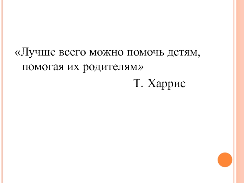 Слайд 20«Лучше всего можно помочь детям, помогая их родителям»