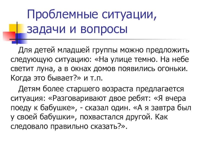 Проблемные ситуации, задачи и вопросы