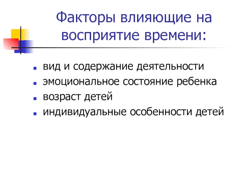 Слайд 5Факторы влияющие на восприятие времени: