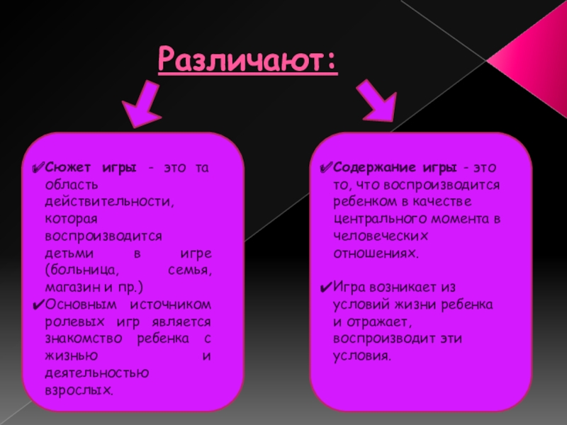 Игра возникает из условий жизни ребенка и отражает, воспроизводит эти условия.