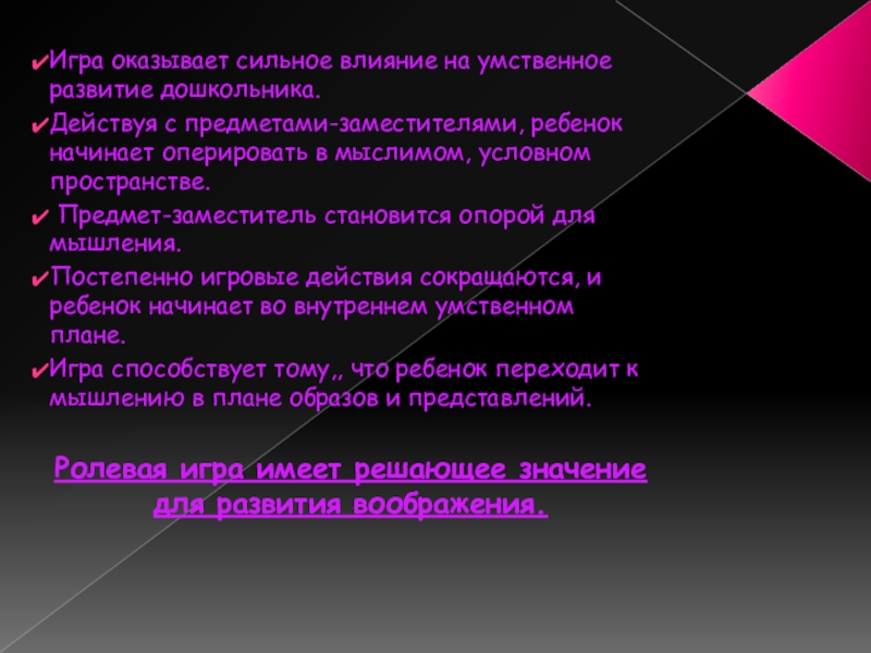 Содержание игры - это то, что воспроизводится ребенком в качестве центрального момента в человеческих отношениях.