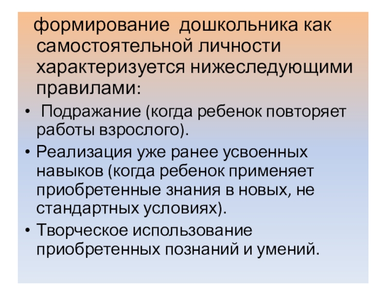 Слайд 14 формирование дошкольника как самостоятельной личности характеризуется нижеследующими правилами: