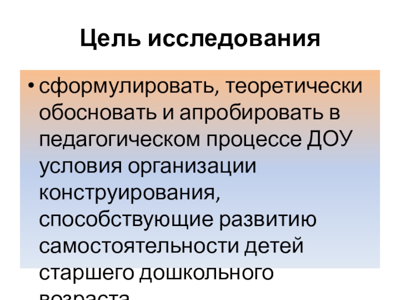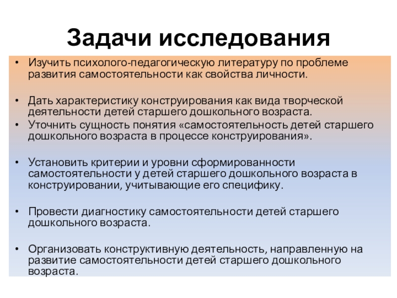 Уточнить сущность понятия «самостоятельность детей старшего дошкольного возраста в процессе конструирования».