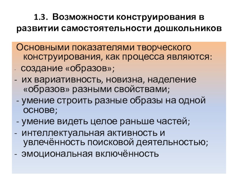 1.3. Возможности конструирования в развитии самостоятельности дошкольников