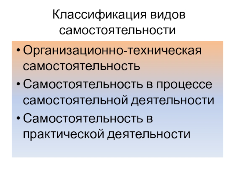 Слайд 11 Классификация видов самостоятельности