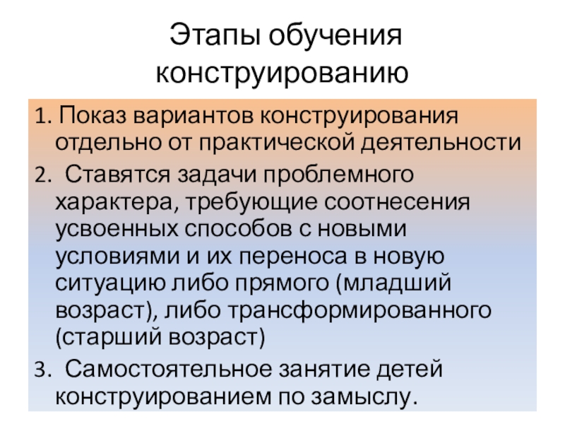 Слайд 22 Этапы обучения конструированию