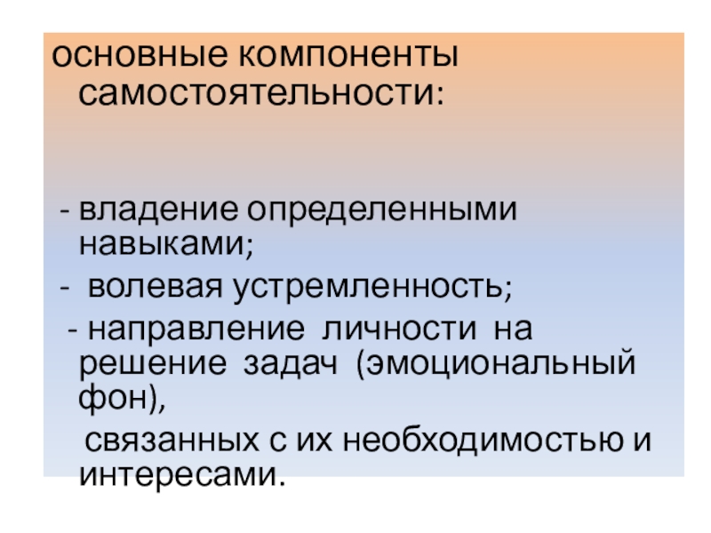 Слайд 15основные компоненты самостоятельности: