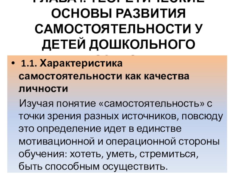ГЛАВА I. ТЕОРЕТИЧЕСКИЕ ОСНОВЫ РАЗВИТИЯ САМОСТОЯТЕЛЬНОСТИ У ДЕТЕЙ ДОШКОЛЬНОГО ВОЗРАСТА