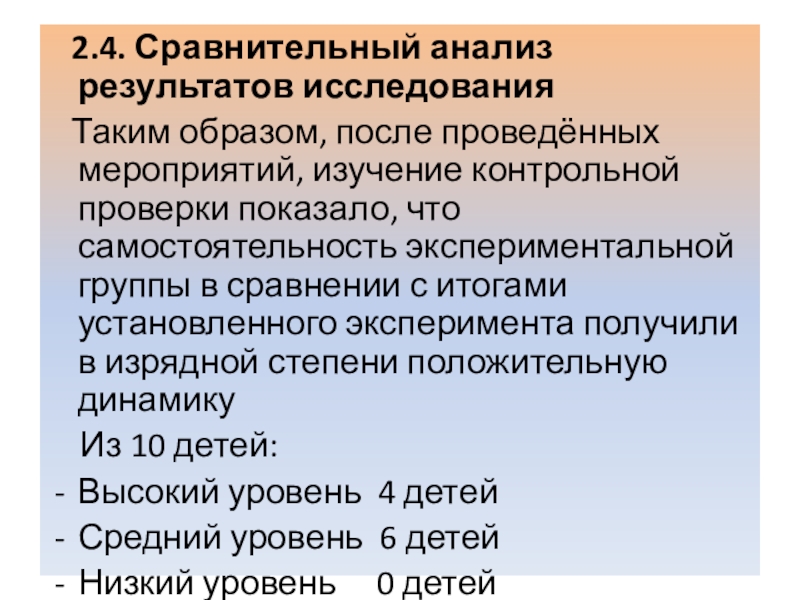 Слайд 29 2.4. Сравнительный анализ результатов исследования