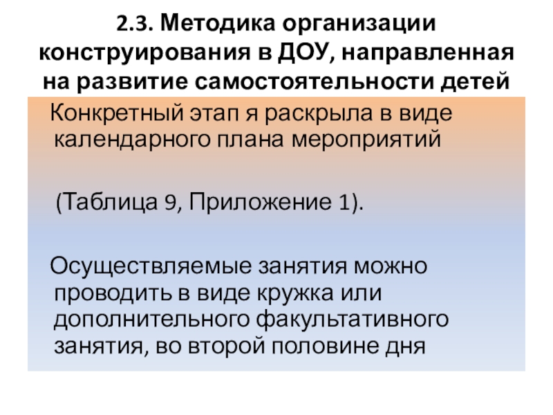 2.3. Методика организации конструирования в ДОУ, направленная на развитие самостоятельности детей