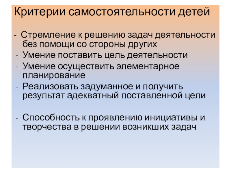 Слайд 26Критерии самостоятельности детей