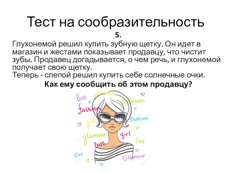 и жестами показывает продавцу, что чистит зубы. Продавец догадывается, о чем речь, и глухонемой получает свою щетку.