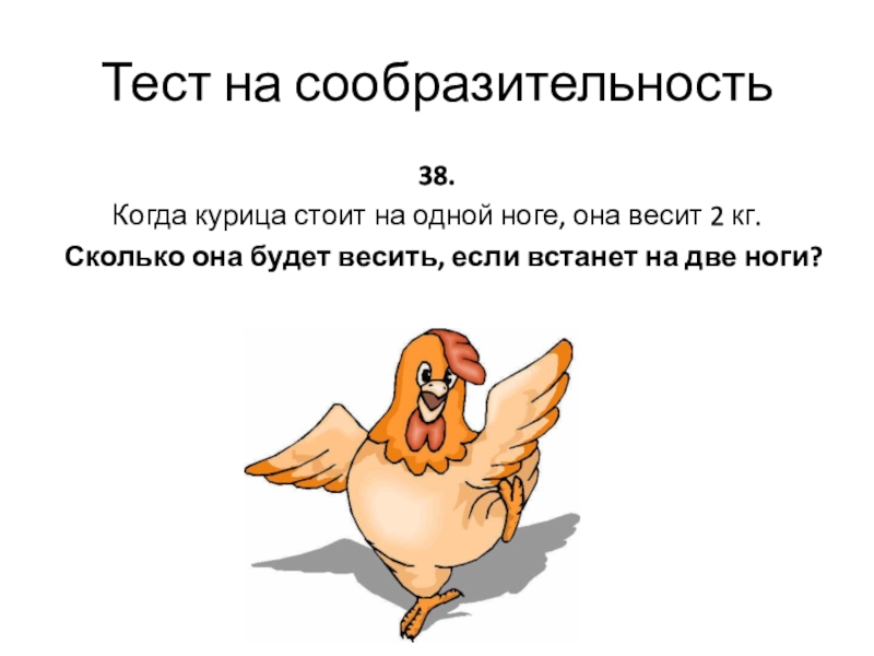 Когда курица стоит на одной ноге, она весит 2 кг. Сколько она будет весить, если встанет на две ноги?