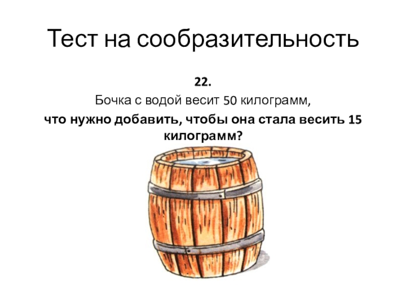 Бочка с водой весит 50 килограмм, что нужно добавить, чтобы она стала весить 15 килограмм?