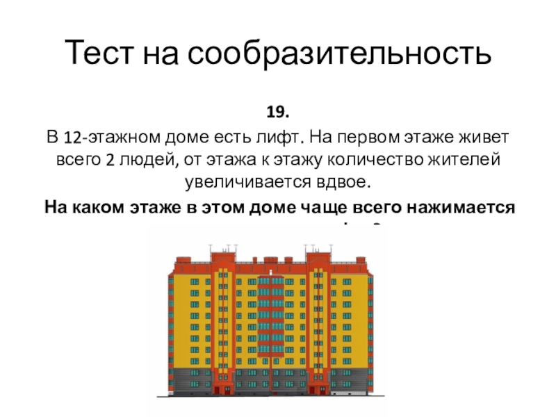 2 людей, от этажа к этажу количество жителей увеличивается вдвое. На каком этаже в этом доме чаще всего нажимается кнопка вызова лифта?