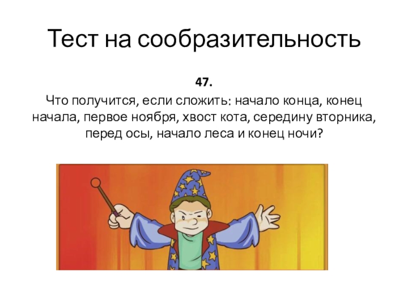 Что получится, если сложить: начало конца, конец начала, первое ноября, хвост кота, середину вторника, перед осы, начало леса и конец ночи?