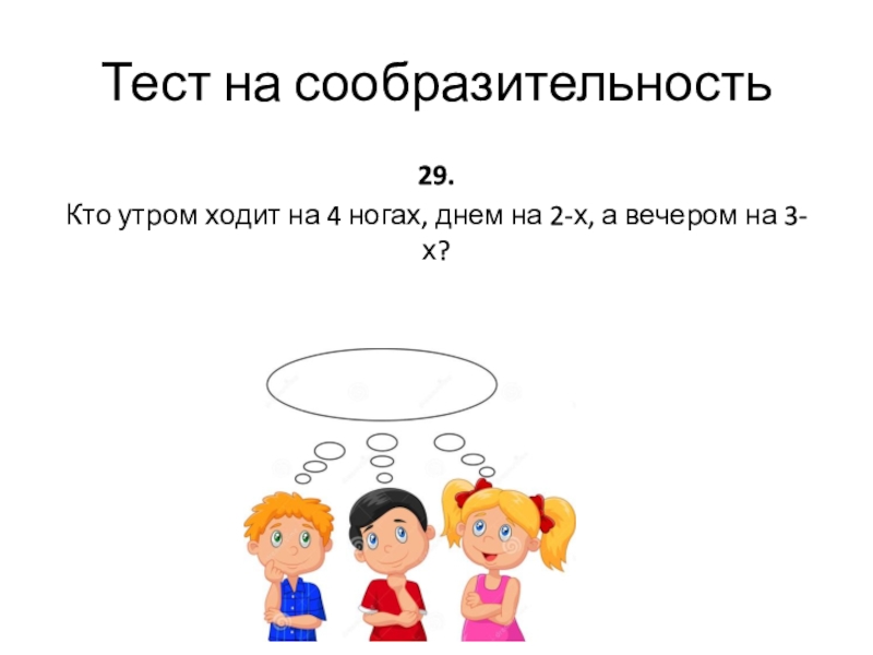 Кто утром ходит на 4 ногах, днем на 2-х, а вечером на 3-х?