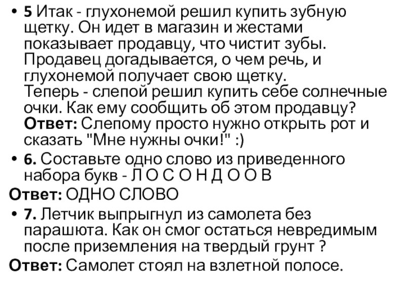 Глухонемой решил купить зубную щетку. Он идет в магазин