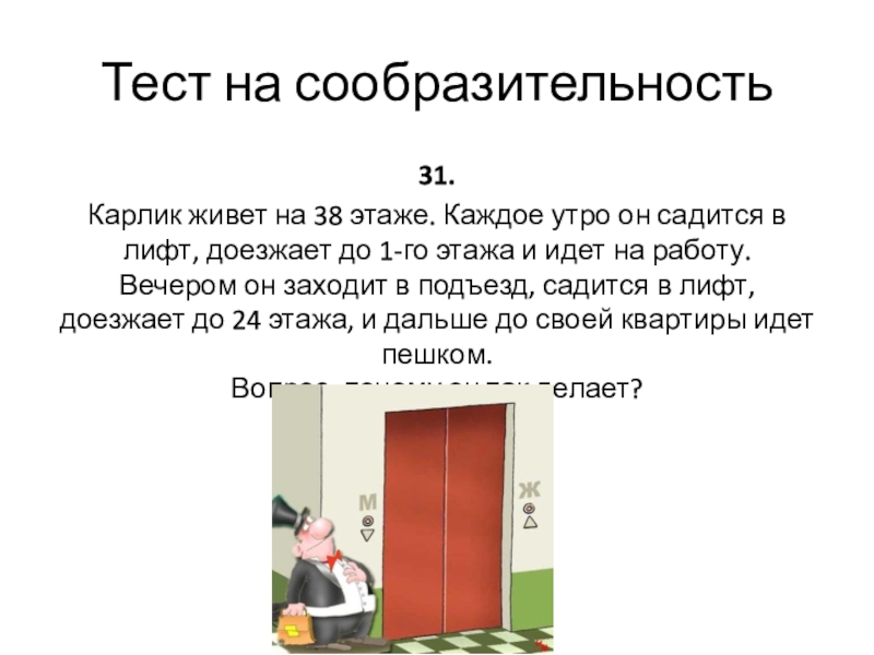 Ответ Не может достать до нужной кнопки лифта, потому что он карлик