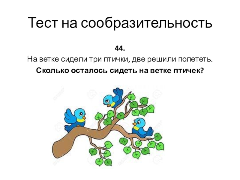 ветке сидели три птички, две решили полететь. Сколько осталось сидеть на ветке птичек?