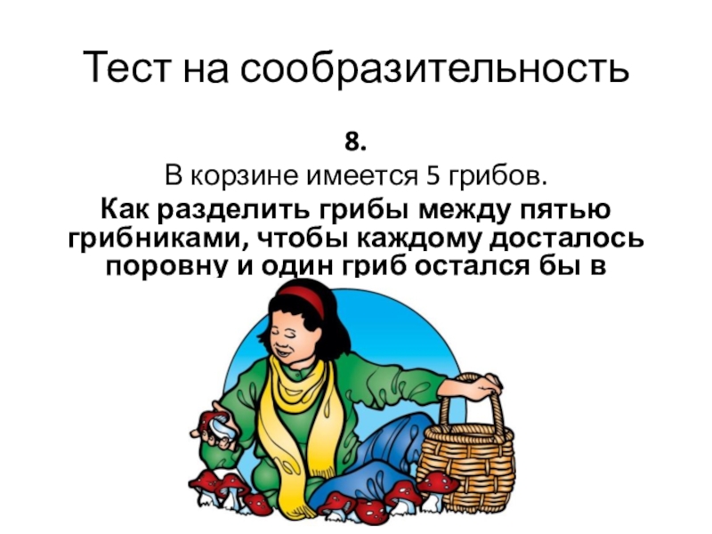 пятью грибниками, чтобы каждому досталось поровну и один гриб остался бы в корзине?