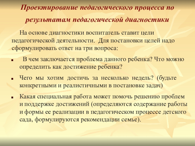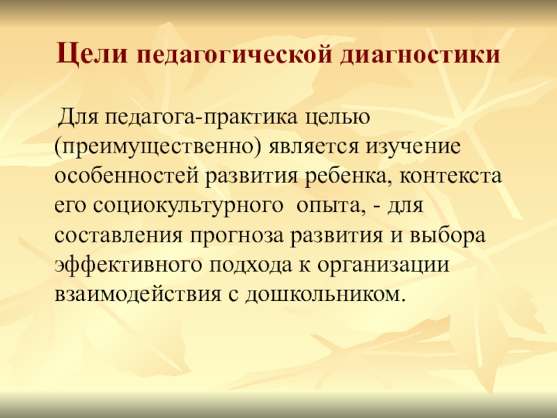 Педагогическая диагностика нацелена на помощь ребенку в педагогическом процессе.