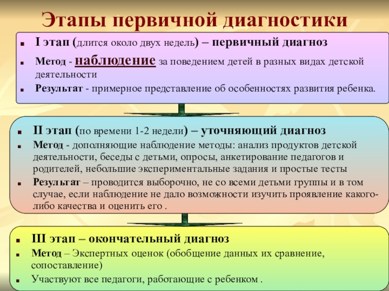 Слайд 12Этапы первичной диагностики